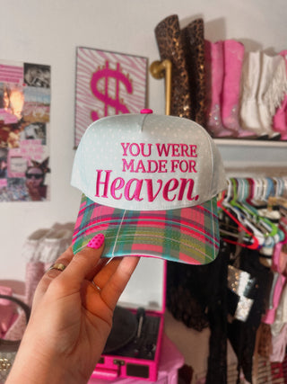 You were made for heaven plaid brim embroidered Hat