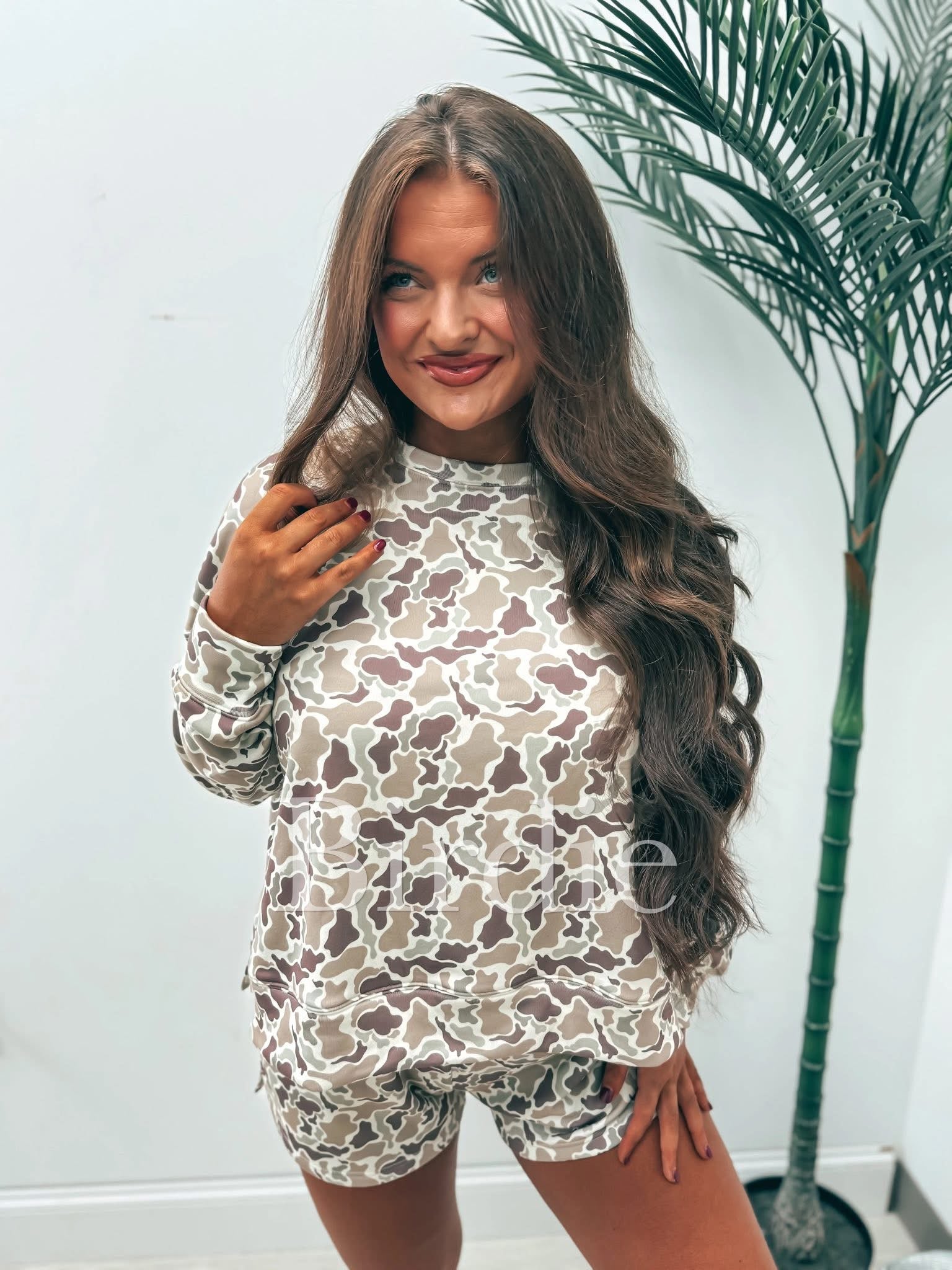 The BIRDIE Butter Camo Set is a luxuriously soft and stylish lounge set that combines comfort with a trendy camo twist. Featuring a subtle cream-toned camouflage print, this set includes a relaxed-fit top and matching bottoms designed for effortless wear.