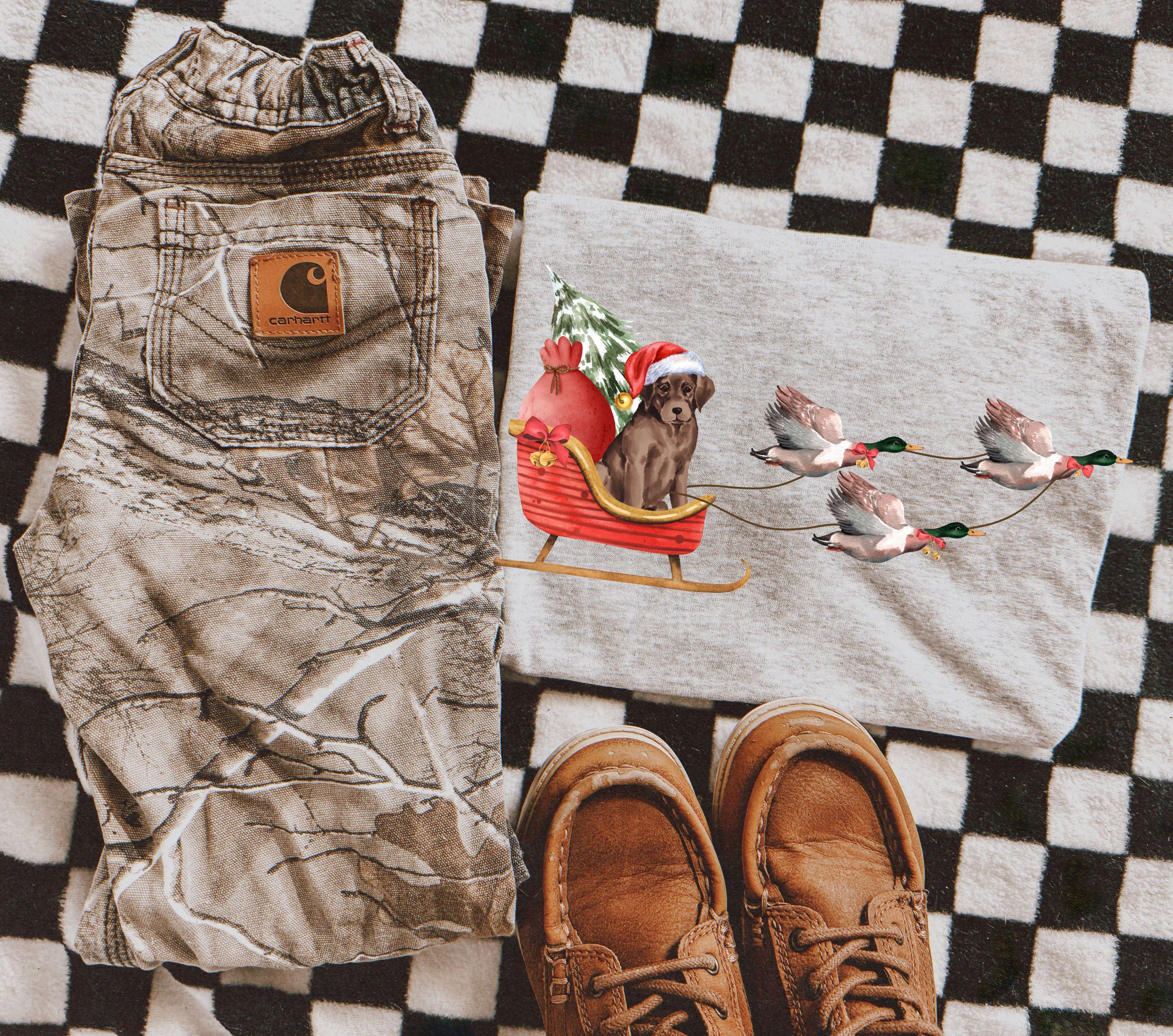 Chocolate lab and mallards Santa’s sleigh| Kids graphic