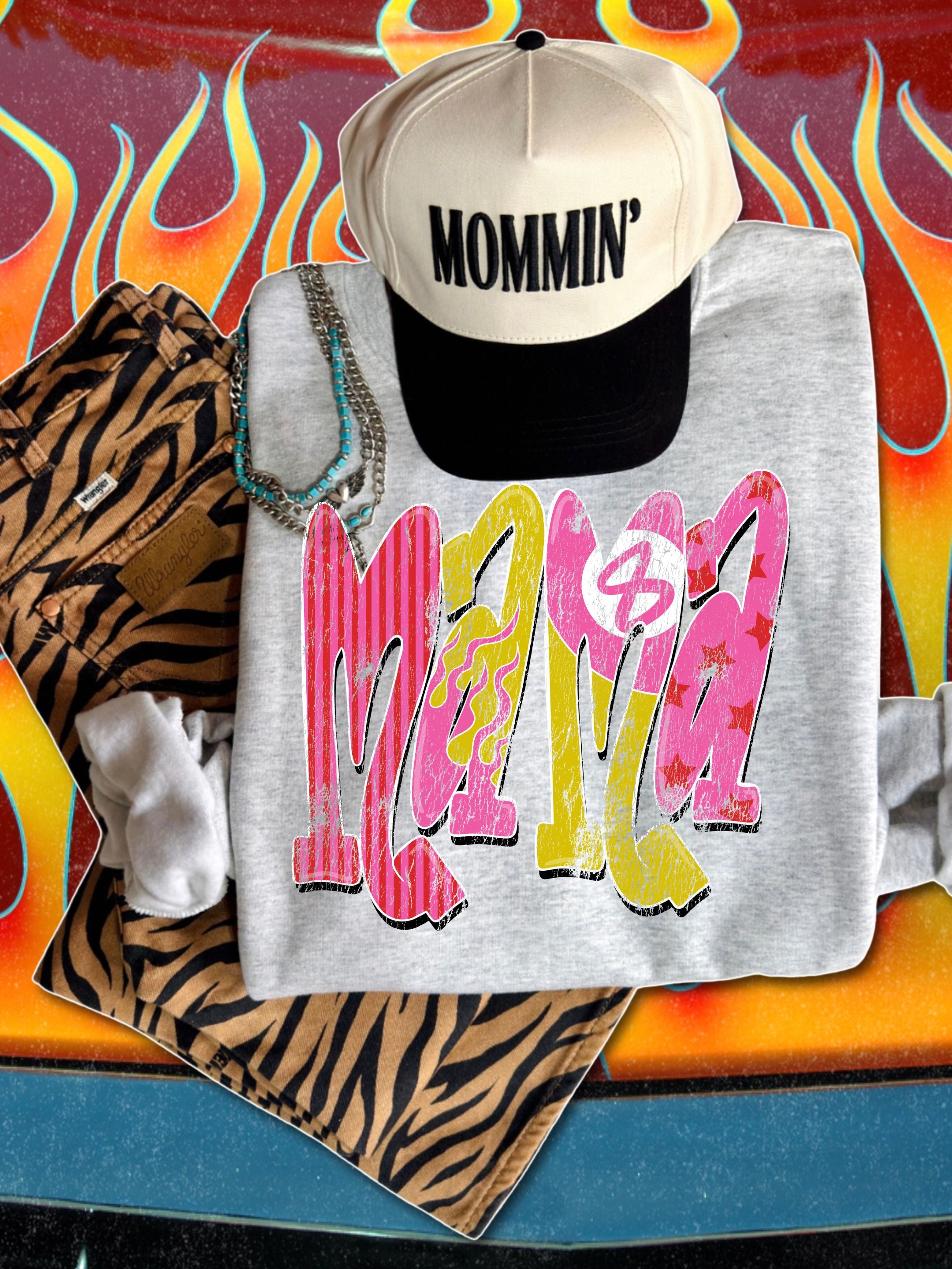 Groovy grunge green and pink mama