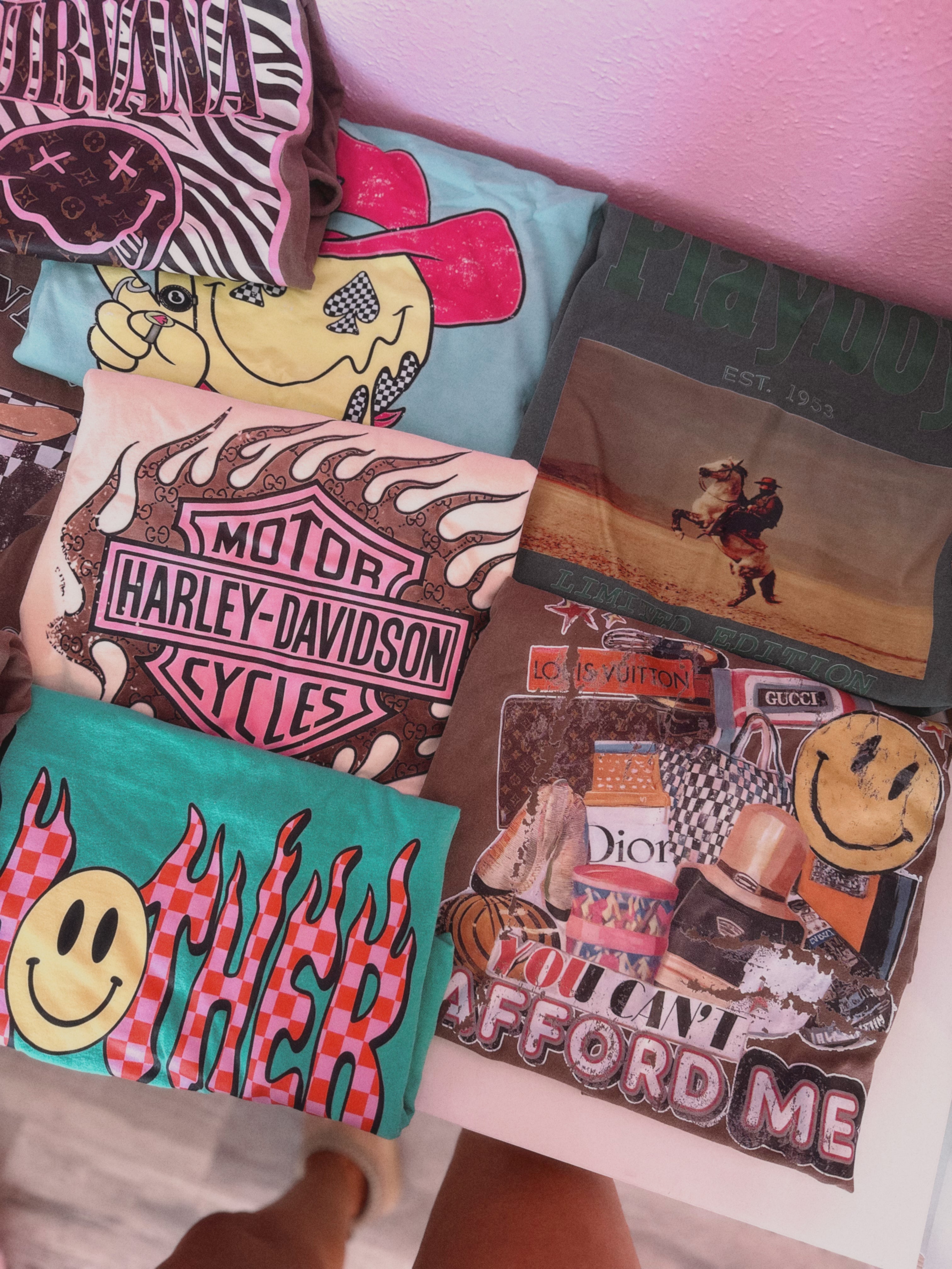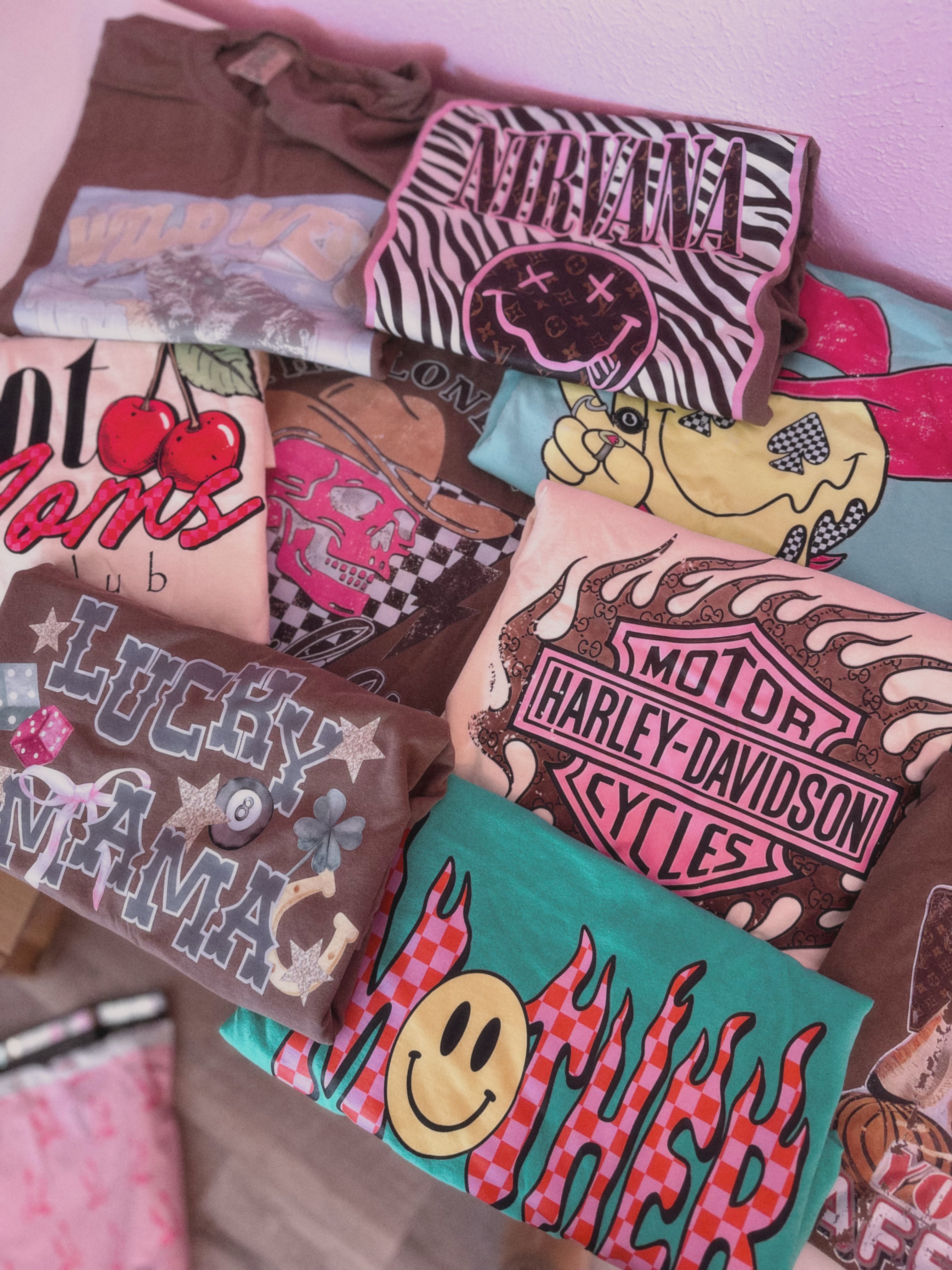 Each one is pressed in-house for that soft, worn-in boutique feel — perfect tucked or styled oversized.