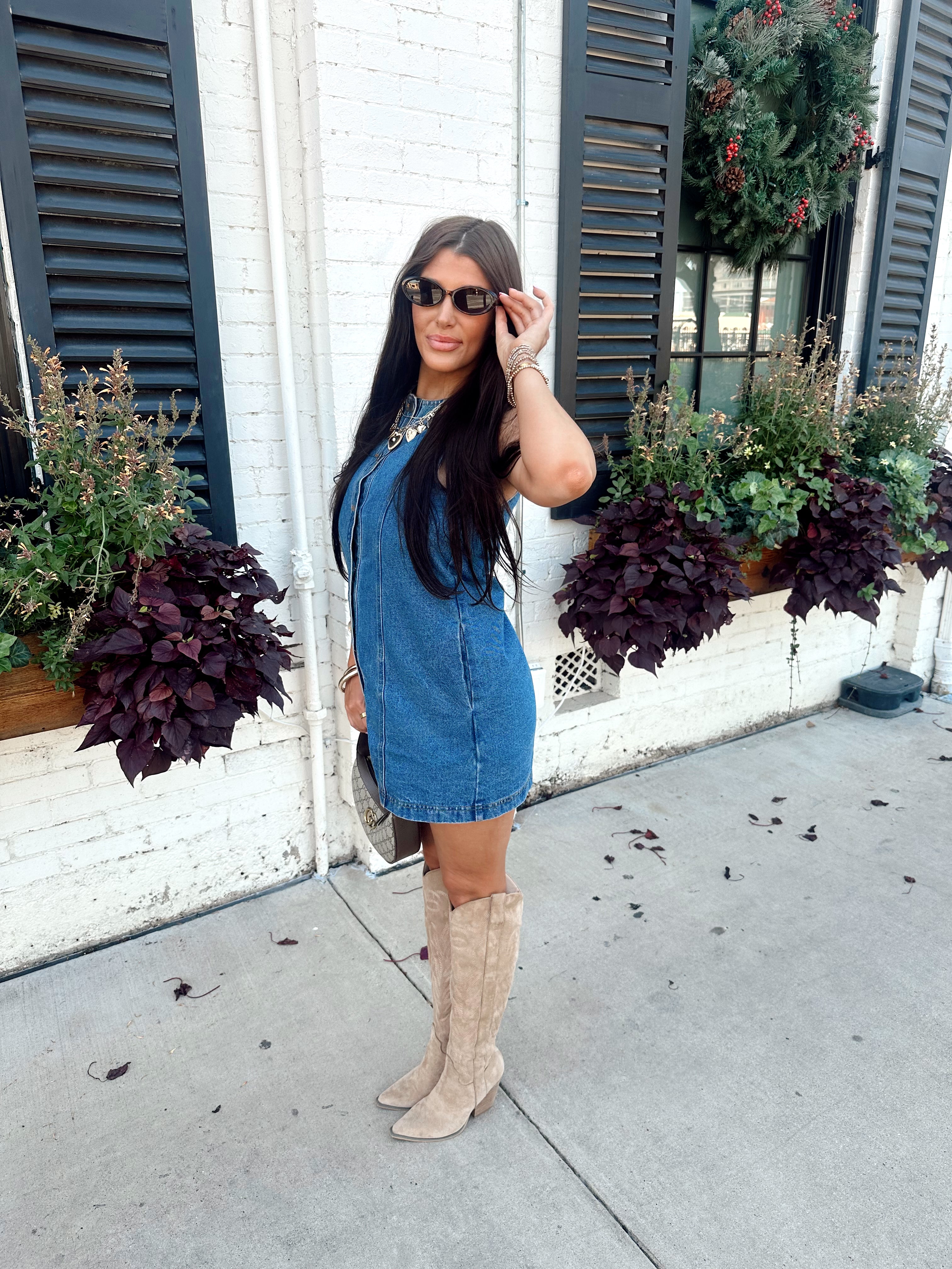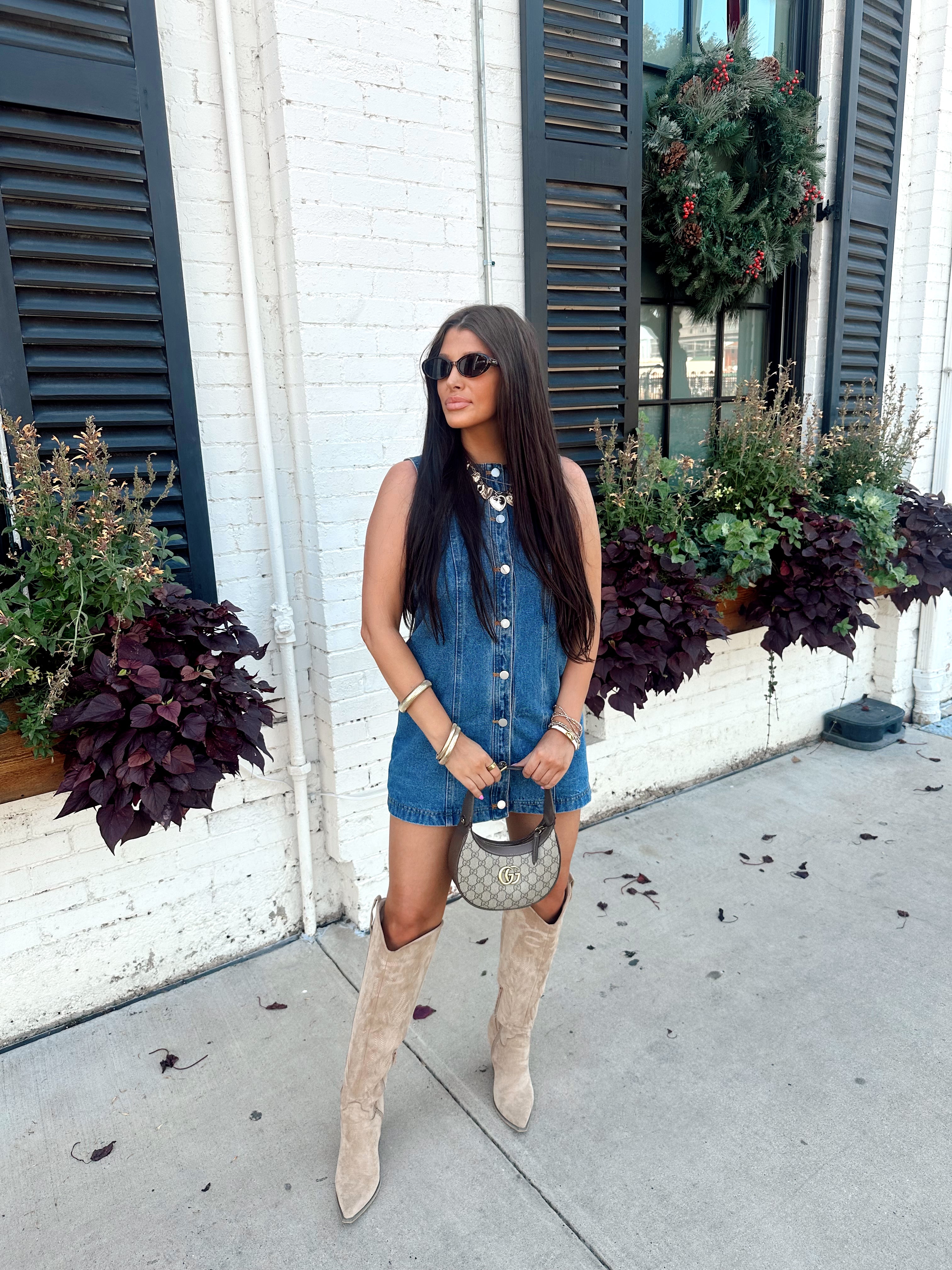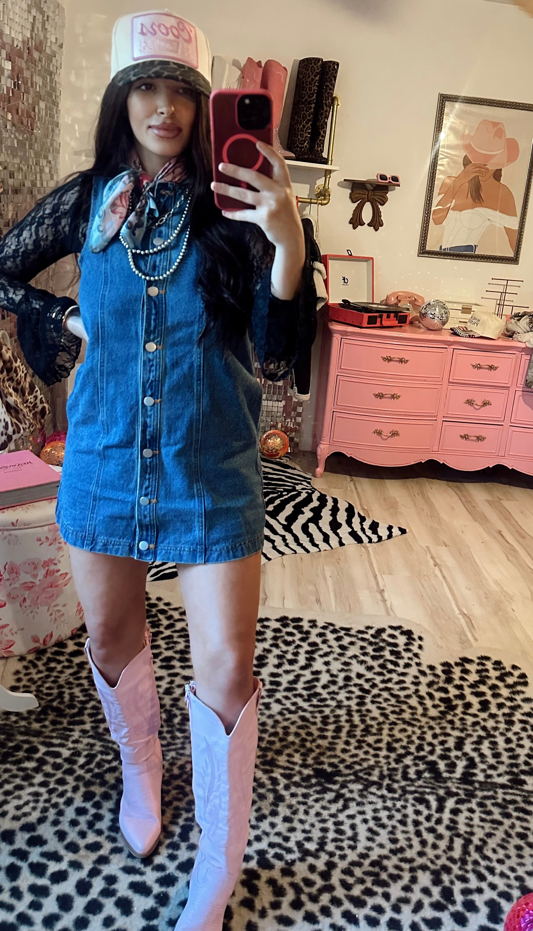 This stretch-denim mini is the moment. Our Denim Dreams Button-Down Mini is made from real denim with the perfect amount of stretch — comfy, flattering, and easy to move in. The snap buttons down the front are fully functional (yes, real buttons), making it perfect for layering or styling solo.