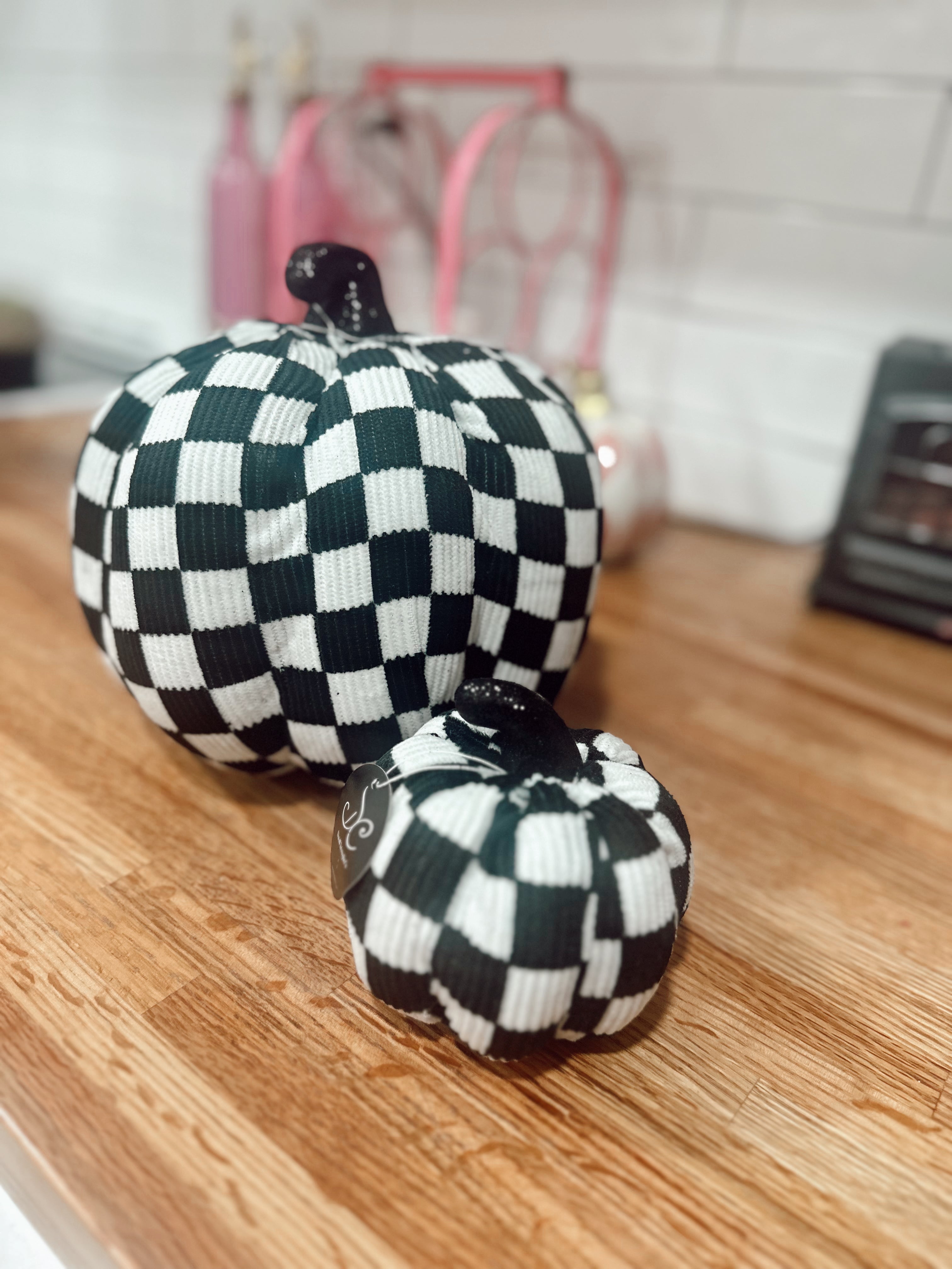 Ready to ship glitter stem velvet checkered pumpkins