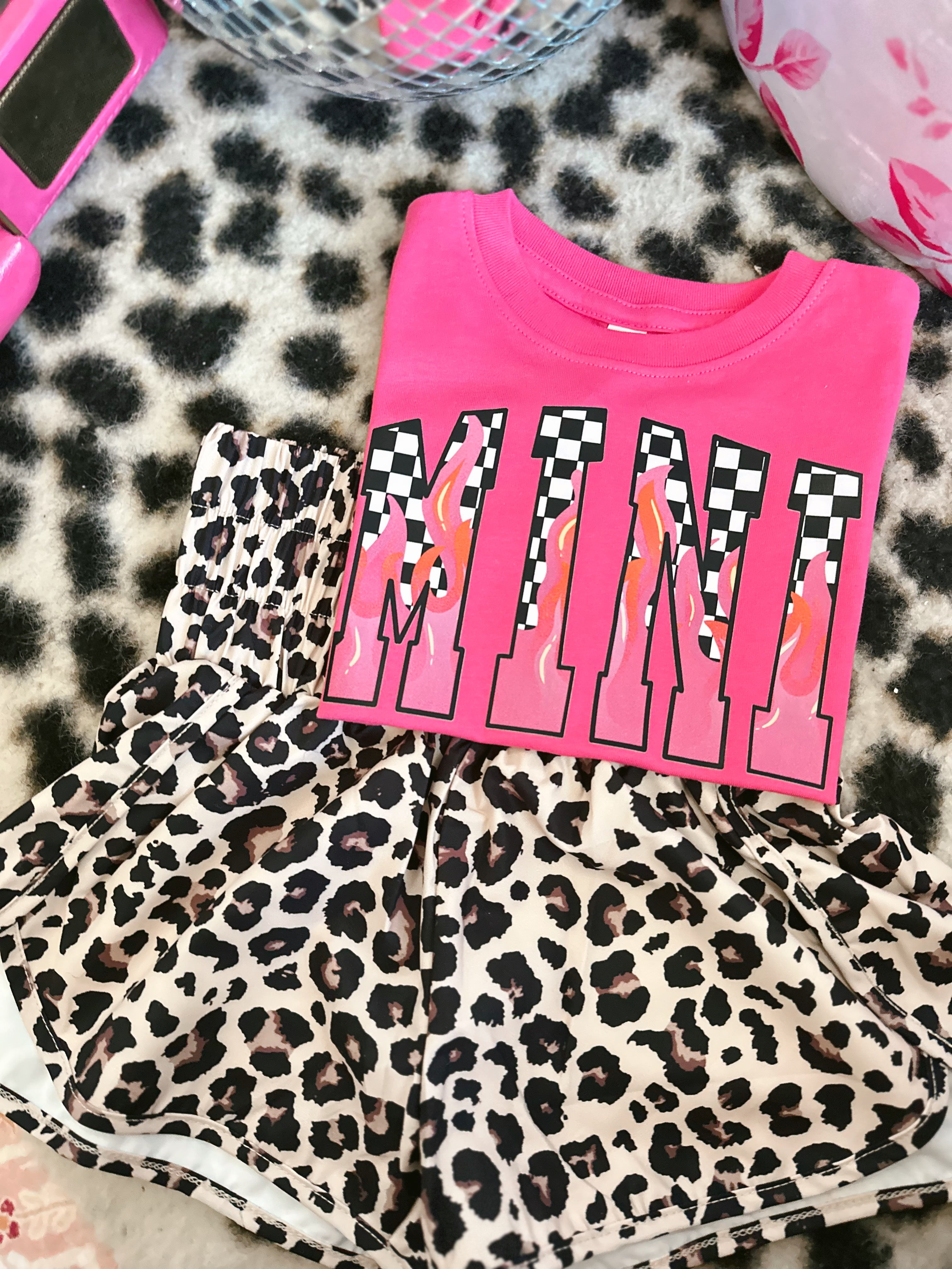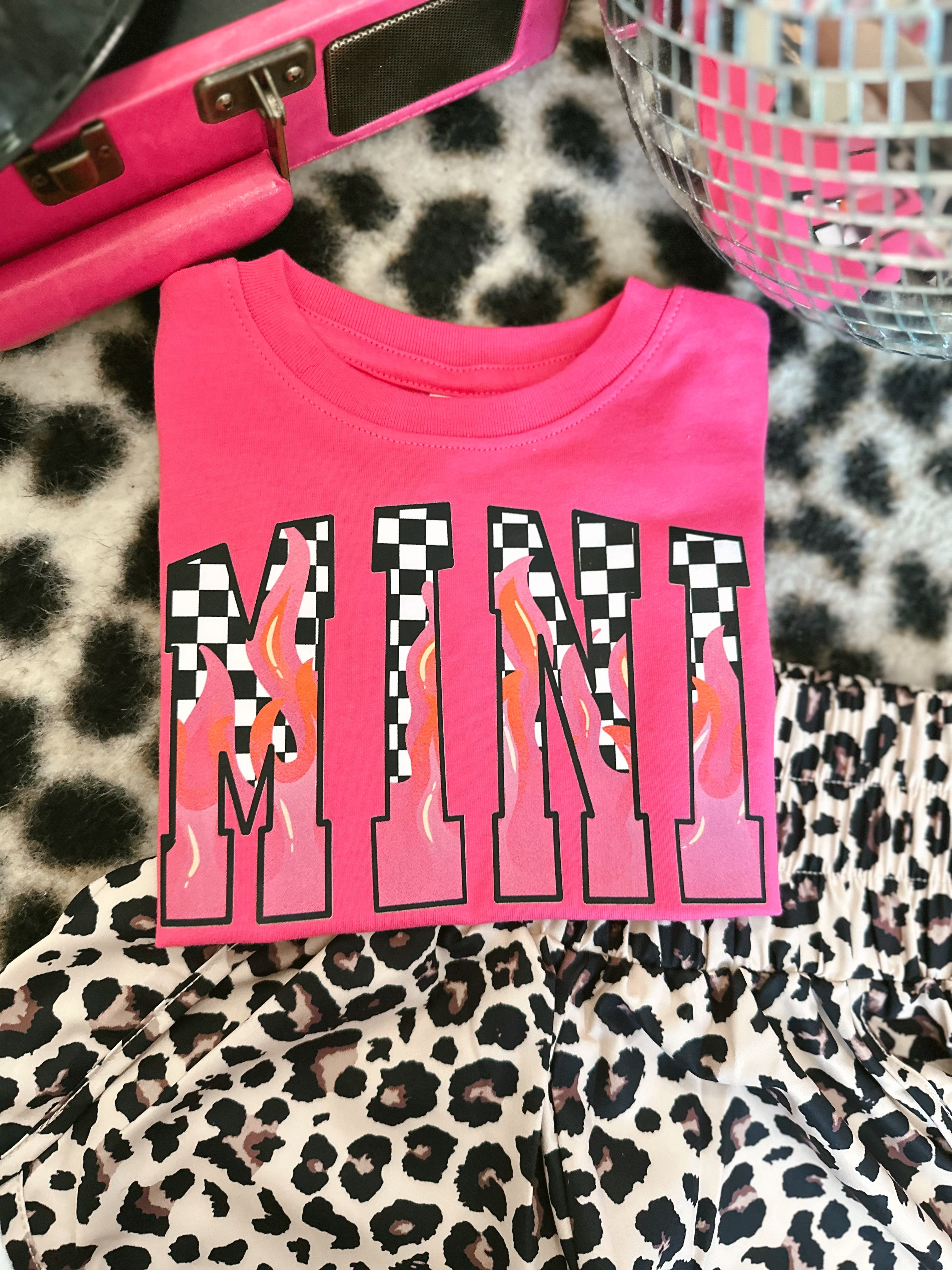 Kids Pink Checkered Flame Mini ~ neon pink comfort colors tee