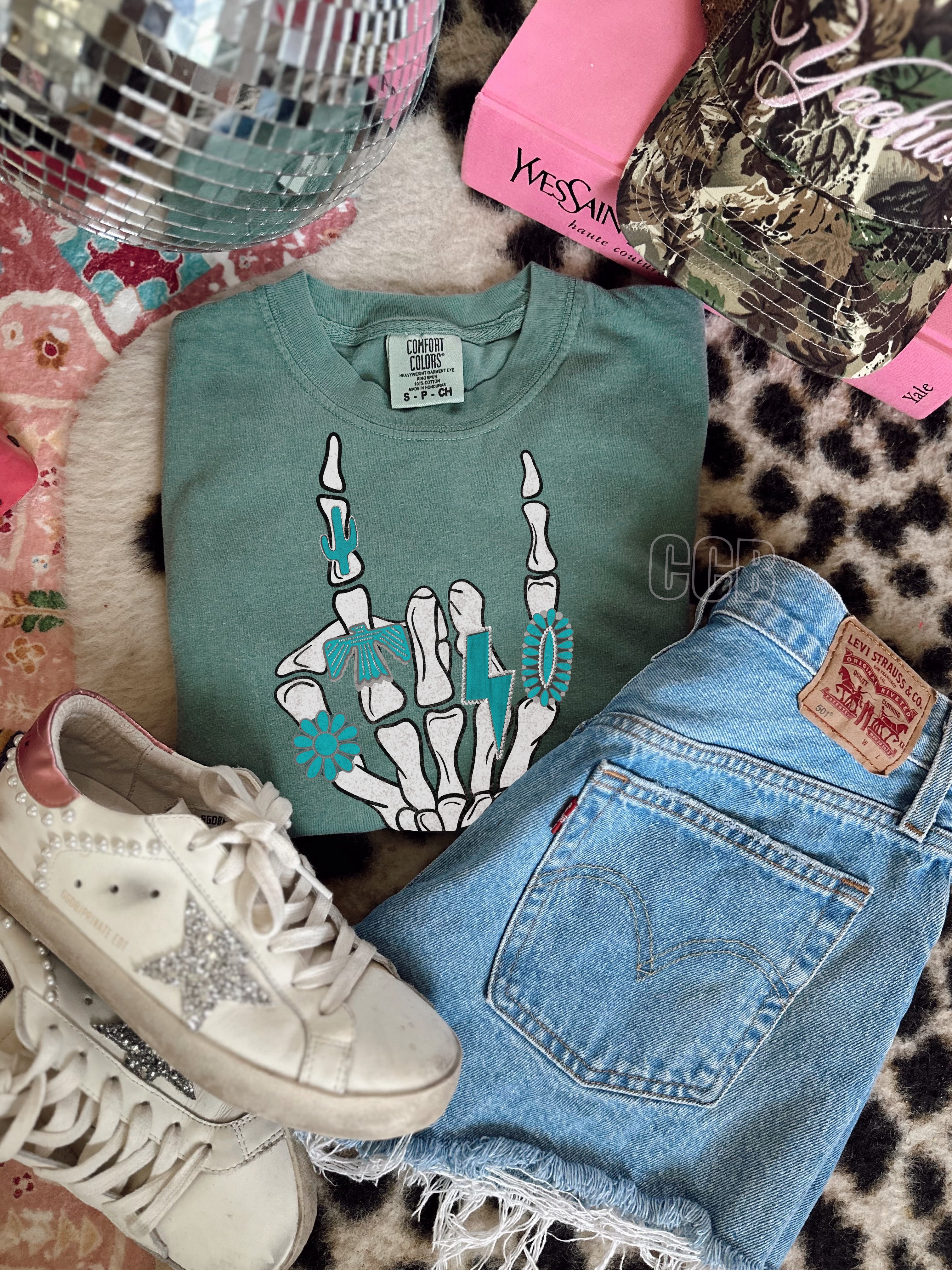 Turquoise Jewels Skelly Hand blue spruce Comfort Colors Tee